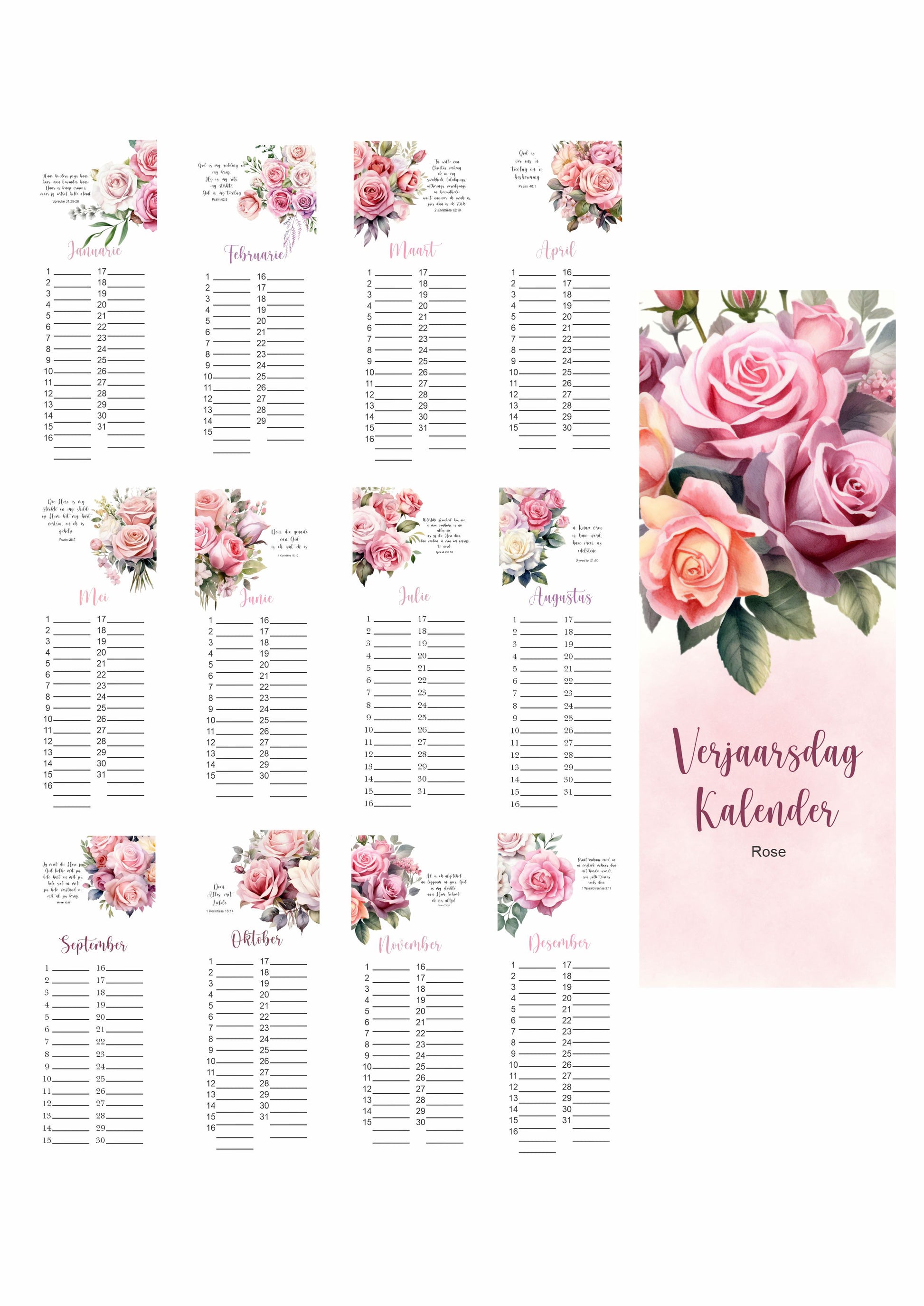 Rose Birthday Calendar